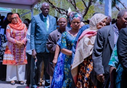 ais wa Jamhuri ya Muungano wa Tanzania Mhe. Dkt. Samia Suluhu Hassan akiwa kwenye foleni ya kwenda kujiandikisha kwenye Daftari la Wapiga Kura kwa ajili ya Uchaguzi wa Serikali za Mitaa katika Kitongo...