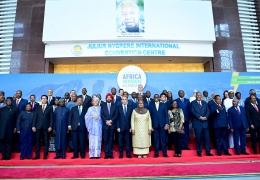 Rais wa Jamhuri ya Muungano wa Tanzania, Mhe. Dkt. Samia Suluhu Hassan akiwa kwenye picha ya pamoja na Wakuu wa Nchi mbalimbali mara baada ya kuwasili katika Kituo cha Mikutano cha Kimataifa cha Juliu...