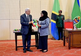 Rais wa Jamhuri ya Muungano wa Tanzania, Mhe. Dkt. Samia Suluhu Hassan akipokea taarifa ya Tume ya kuangalia jinsi ya kuimarisha Taasisi za Haki Jinai hapa Tanzania kutoka kwa Mwenyekiti wa Tume hiyo,...