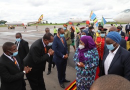 <p>katika Uwanja wa Ndege wa Kimataifa wa Entebbe alipowa...