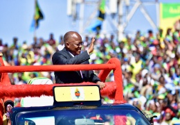 Rais wa Jamhuri ya Muungano wa Tanzania Mheshimiwa Dkt. John Pombe Magufuli akiwapungia mkono wananchi waliohudhuria sherehe za Uapisho wake kuwa Rais wa Jamhuri ya Muungano wa Tanzania kwa Muhula wa ...