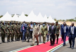 Rais wa Jamhuri ya Muungano wa Tanzania Dkt. John Pombe Magufuli akimlaki mgeni wake Rais wa Jamhuri ya Uganda Mhe. Yoweri Kaguta Museveni alipowasili kutia saini Waraka wa Pamoja Unaoagiza</p>